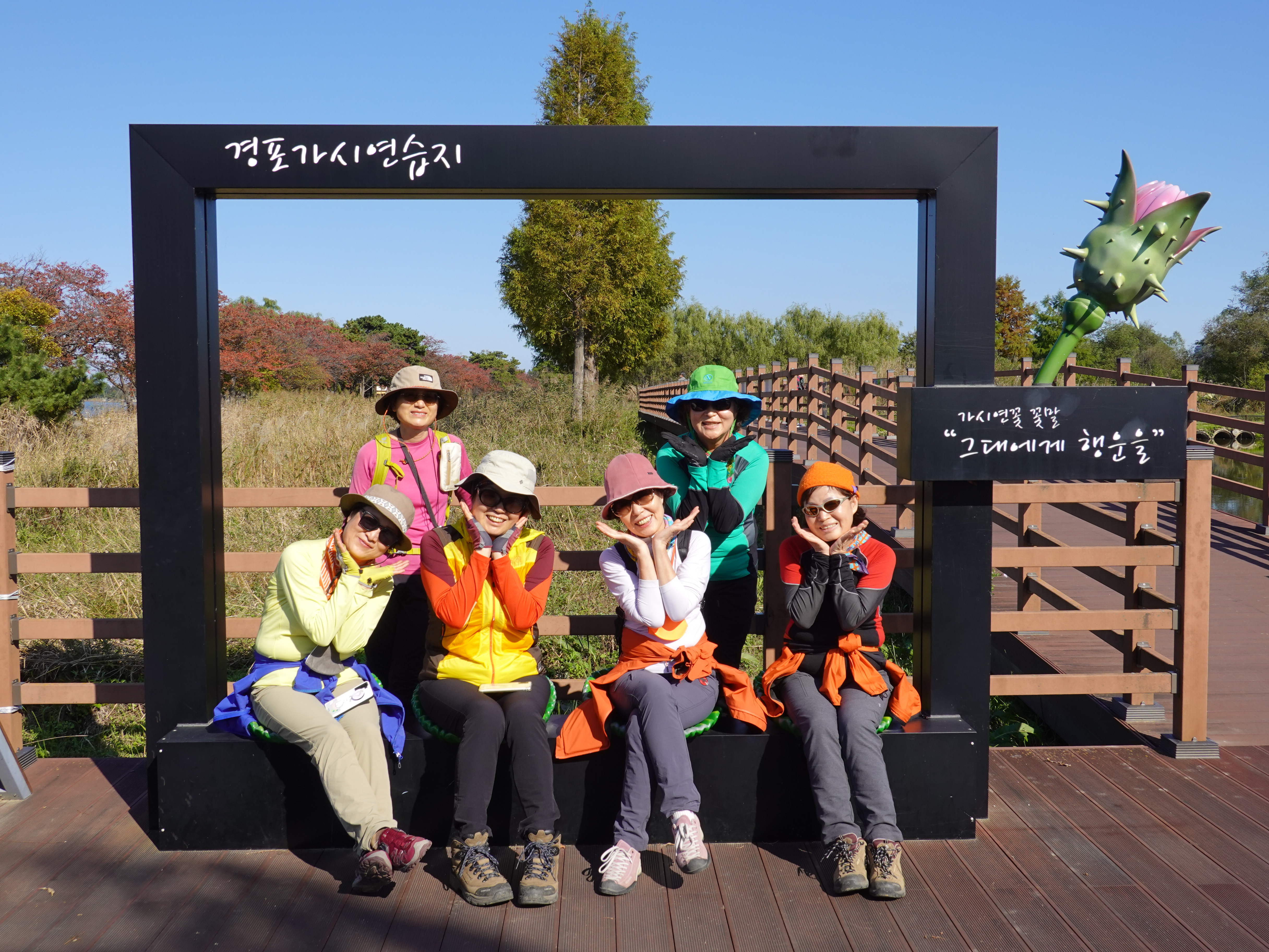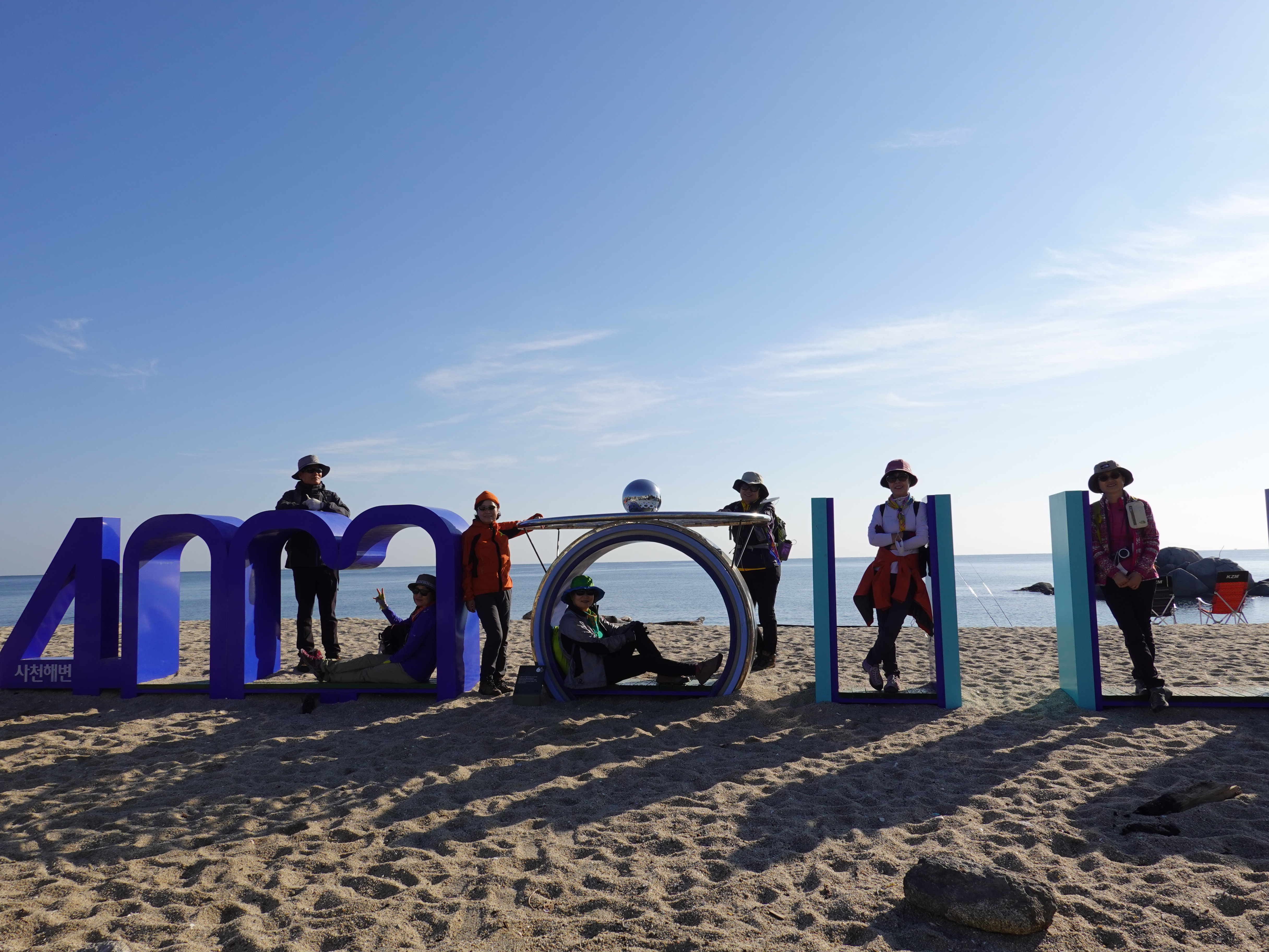 사천진해변공원에서 단체사진을 한장 담고 출발한다