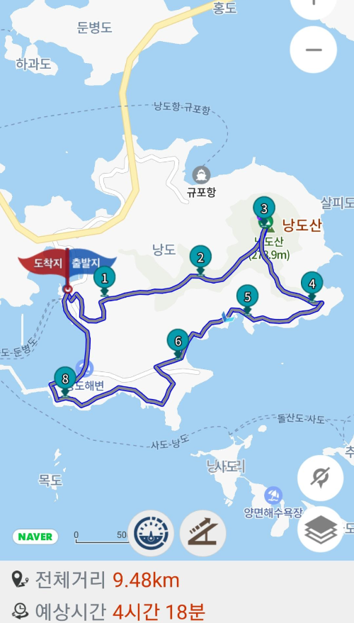 낭도 산행 및 둘레길 개념도