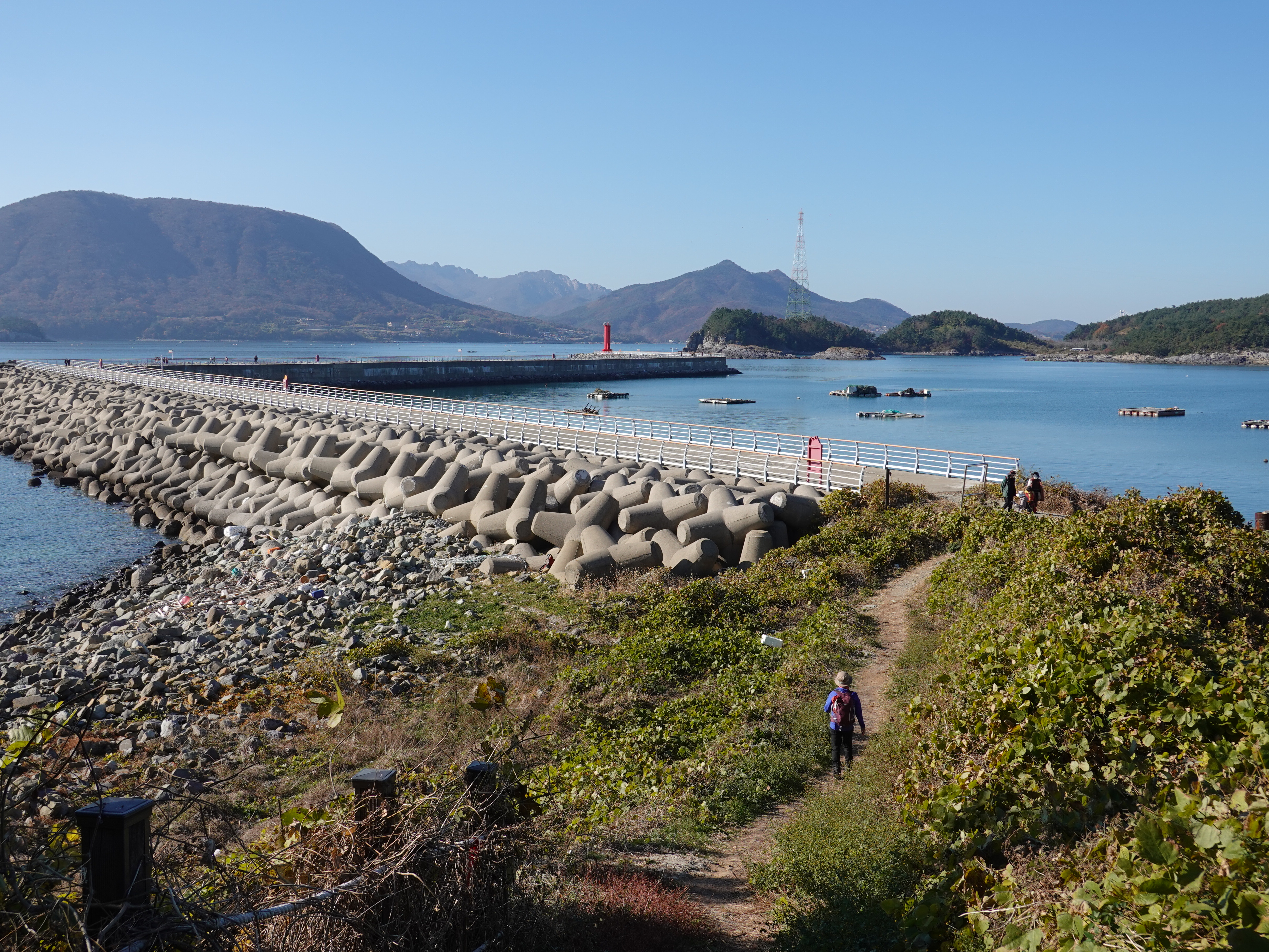 저 뒤로 보이는 선착장까지는 도로를 걸어 회귀해야 한다